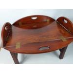 Attractive mid century BUTLER INSPIRED TABLE in dark wood finish and brass hinges. 54 x 76 x 48 cm approx with folding side raised. - nice condition!