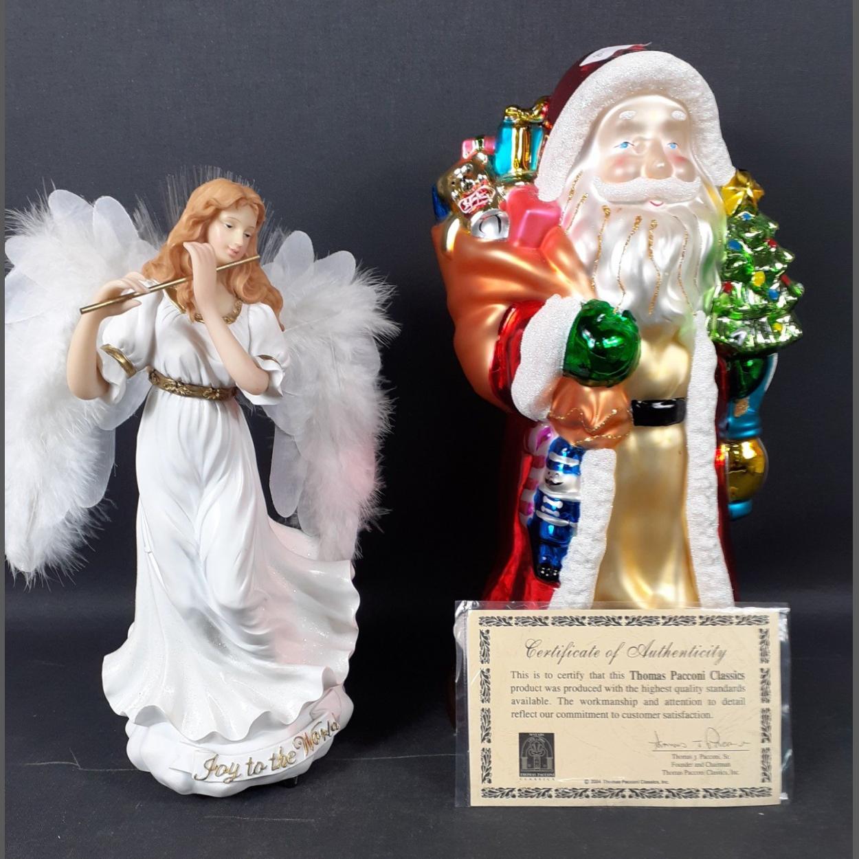 BUY NOW FOR CHRISTMAS .....134 days to go ..Ho Ho Ho !!! A large Glass SANTA figure by Thomas Pacconi Classics standing 40cm tall and a FIBER OPTIC Angel playing a flute