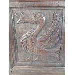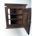 BARN FIND!(complete with cobwebs! A BEAUTIFUL VINTAGE hand carved wall hanging corner cupboard (probably Dutch)with the door panel hand carved in the shape of a duck - dimensions of the cupboard are 53cm width x 63cm height approx -the cupboard will require a little tlc repair with a piece of part backing board and a good clean! We left the cobwebs for dramatic effect!
