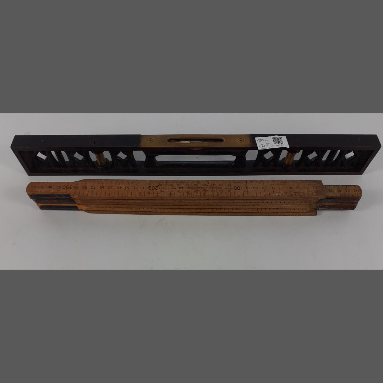 Vintage J. Rabone & Sons 12in Cast Iron Combination Spirit Level (45cm long approx) and Chesterman folding wooden rule No. 1641.