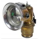 An interesting AUTOMOTIVE and RAILWAYANA lot to include a LUCAS KING OF THE ROAD early acetylene lamp (glass cracked), A brass LUCAS CALCIA CLUB carbide lamp with wear and broken front glass (green side glasses are good), an ELI GRIFFITH of Bradford Railway style lamp with good glass and a WESCO oil can. Four super items.