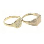 Two signet rings 375 stamped 9.24g total weight approx ring sizes V(with engraving) and W(not engraved)
