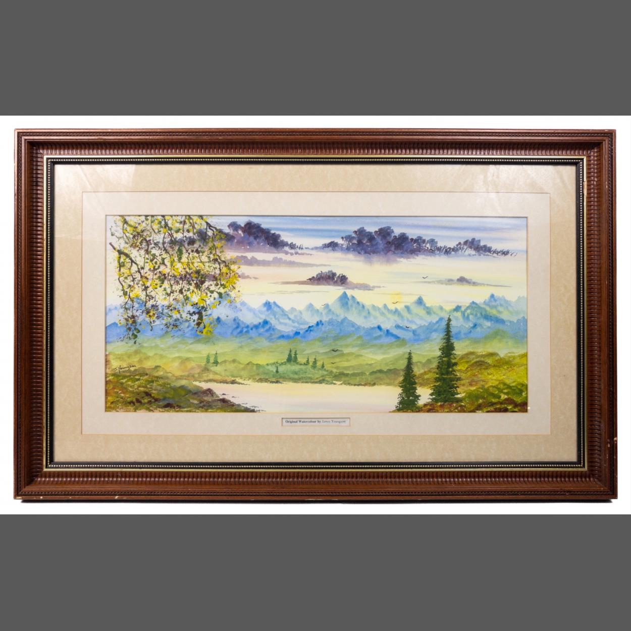 An original framed water colour by JAMES YOUNGSON 'Papion', comes with certificate of authenticity signed by the artist frame size 100x60cm approx, some slight damage to the wooden framework