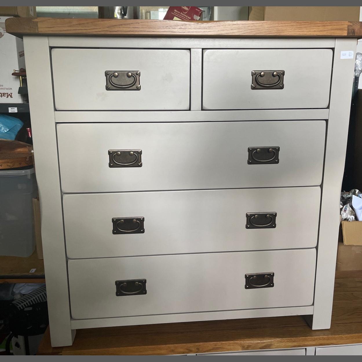 Ex IKEA - Part of a bedroom set of five matching items - a two over three chest of drawers finished in light grey - height 100cm x width 98cm x depth 43cm approx