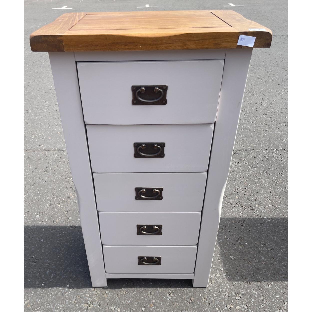 Part of a bedroom set - a five drawer chest of drawers finished in light grey - height 100cm x width 57cm x depth 43cm approx