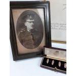 A boxed MBE with presentation certificate signed by TWO KINGS George V and his son the future Edward VIII in his capacity as Grand Master and Knight Grand Cross of the British Empire, very unusual indeed to find two kings signatures on one document. The recipient William Robert Rae was apparently security Superintendent and a confidant of King George V and along with the MBE was presented with a private gift of the gold and seed pearl cufflinks obtained from the best Scottish retailer Hamilton & Inches, jewellers by appointment to his Majesty as well as his Grandmother Queen Victoria. There are also two personal photographs, one showing him proudly wearing the actual medal.