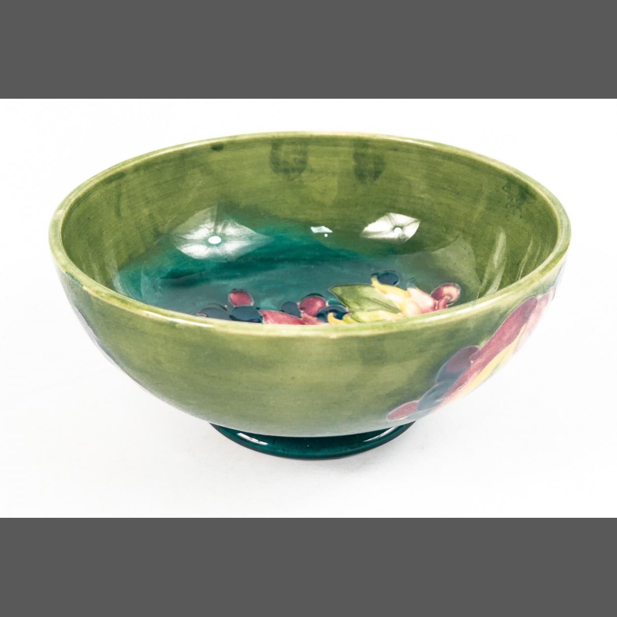 MOORCROFT Leaves and Berries Green bowl 16cm in diameter and just over 7cm tall. William Moorcroft signature to base. In good condition with no damage.