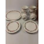 A small vintage wicker picnic basket with a part-PARAGON teaservice