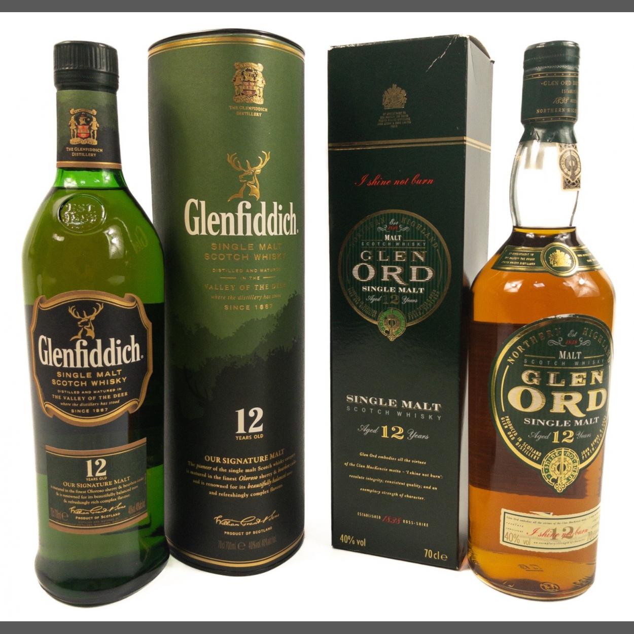 GLENFIDDICH 12 Year Old Valley of the Deer 70cl / 700ml and a boxed bottle of GLEN ORD 12 Year Old 70cl. The item is sold as described and we do not accept liability for the state of the closure or the taste of the contents.