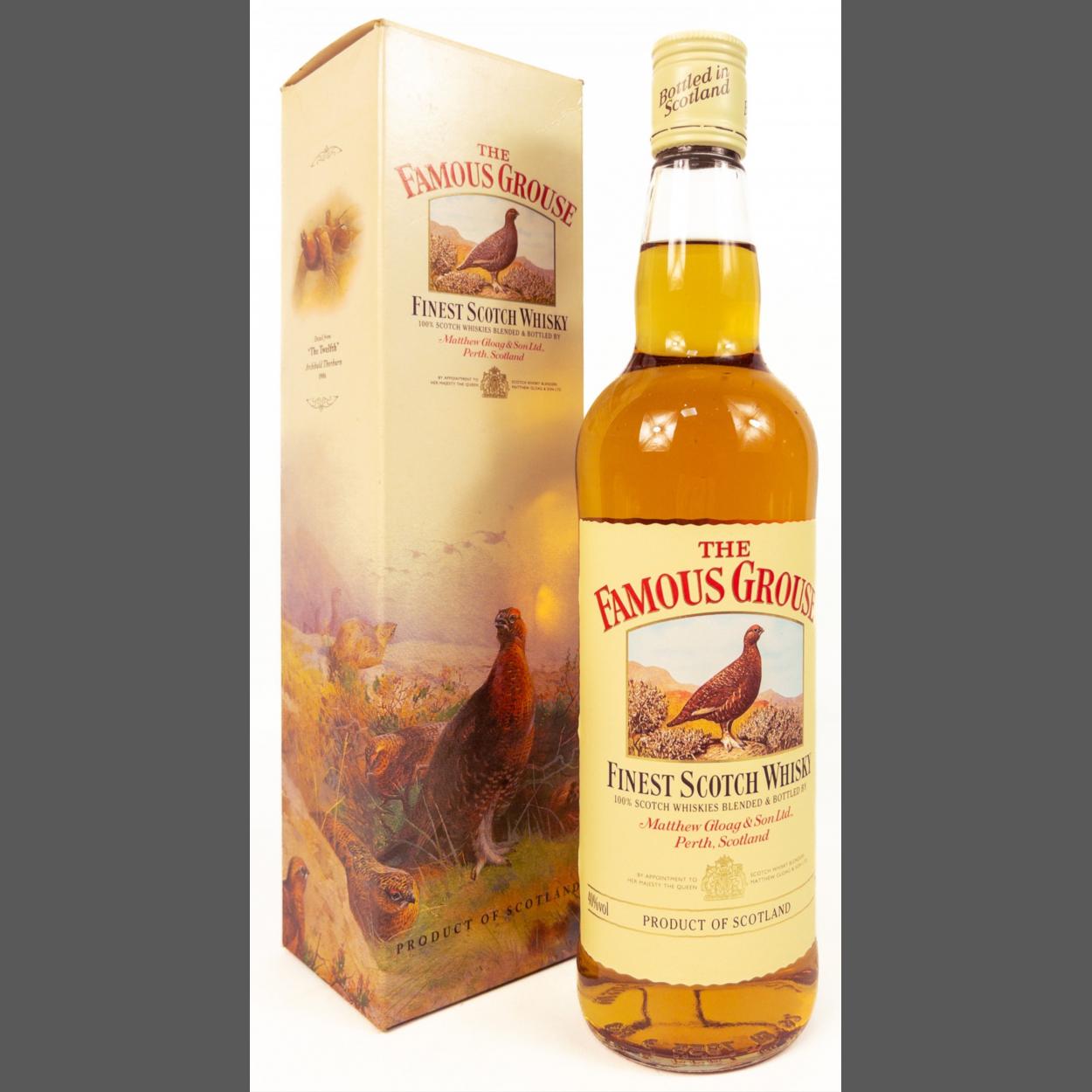 A boxed bottle of the FAMOUS GROUSE blended whisky. The item is sold as described and we do not accept liability for the state of the closure or the taste of the contents.