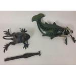 Two intriguing padlocks - the first an Oriental-inspired brass fish (15cm long) complete with 2 keys, the second being a brass frog (13cm long) with Chinese-inspired lock