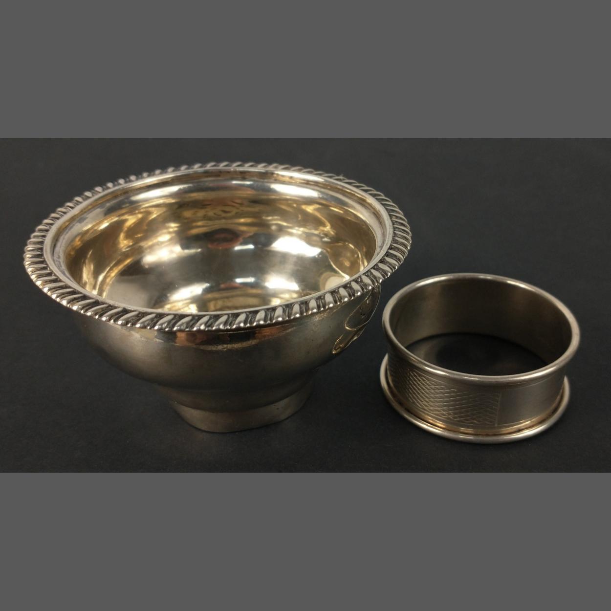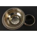 A silver tea strainer hallmarked Edinburgh 1815, possibly by William & Patrick Cunningham, 8cm dia, 74.5g and a silver napkin ring hallmarked Birmingham by Harman Brothers weight 10g