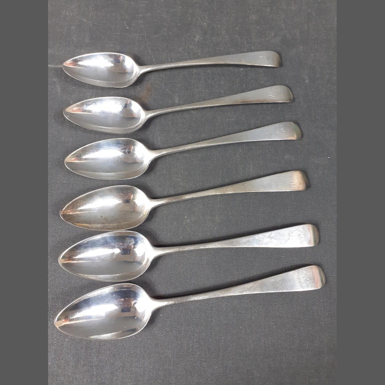 SCOTTISH SILVER HOARD ! Very rare to find as a matched set. Six GEORGE III Edinburgh 'W' monogrammed spoons by Robert Grey. All with matched 1800 dates and in nice uncleaned as found condition. Each spoon measures 18cm approx and weighs between 35g & 37g an impressive 200g approx