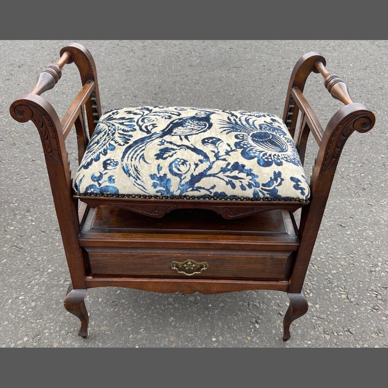 A nice example of a VICTORIAN piano stool of the highest quality! - the seat pad is notched to raise up and down to suit the user, and there is also a storage drawer for sheet music below - dimensions 60cm height x 60cm width x 35cm depth approx - this piano stool is of the highest quality!