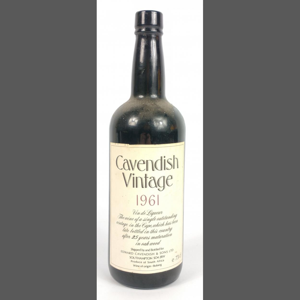 CAVENDISH Vintage Vin De Liqueur 73cl - seal intact and comes with dust from the cellar! The item is sold as described and we do not accept liability for the state of the closure or the taste of the contents.