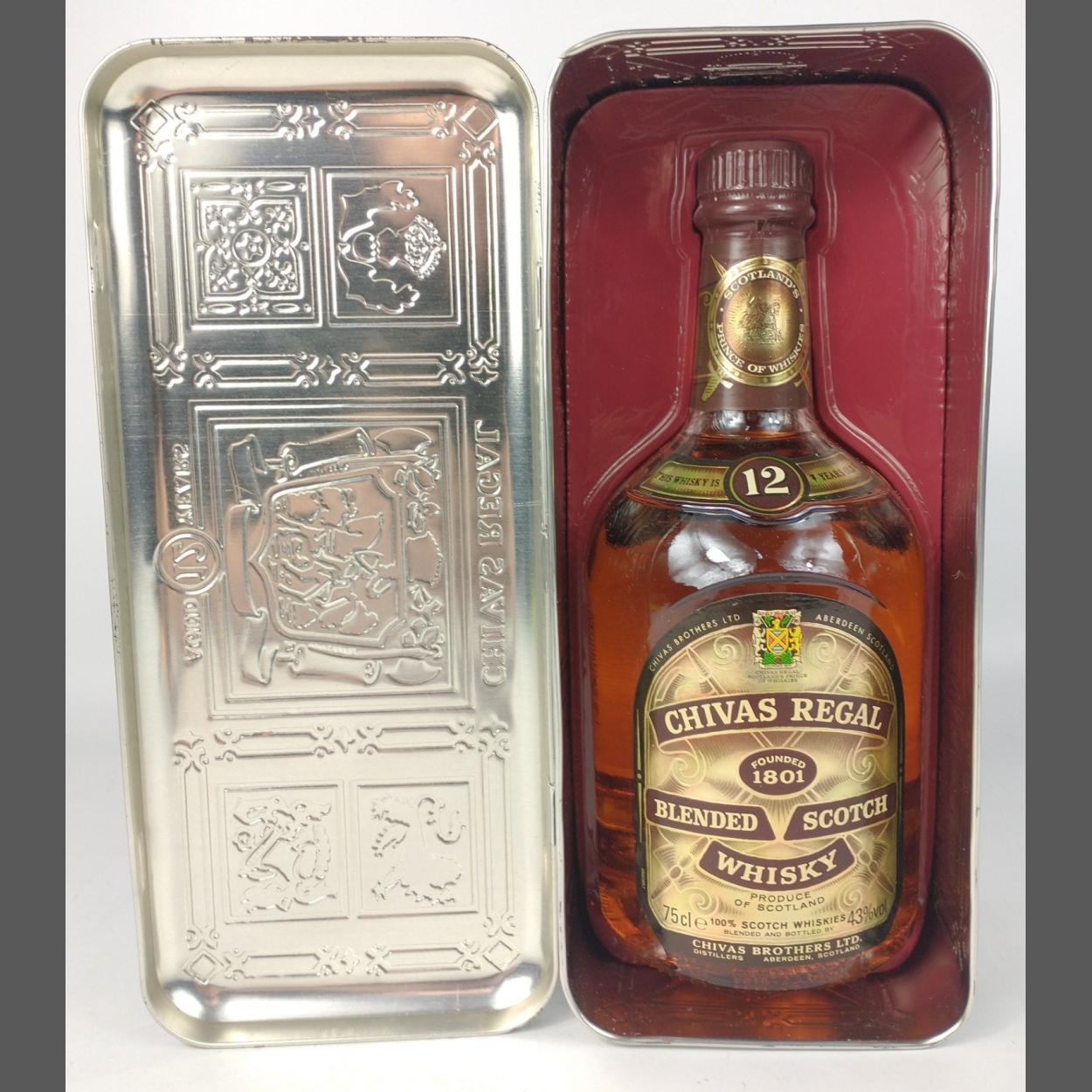 CHIVAS REGAL 12 years old Blended Scotch Whisky 75cl 43% volume within its original presentation tin - condition of bottle 'as new' and seal intact and the tin showing signs of rusting but still presentable. The item is sold as described and we do not accept liability for the state of the closure or the taste of the contents.
