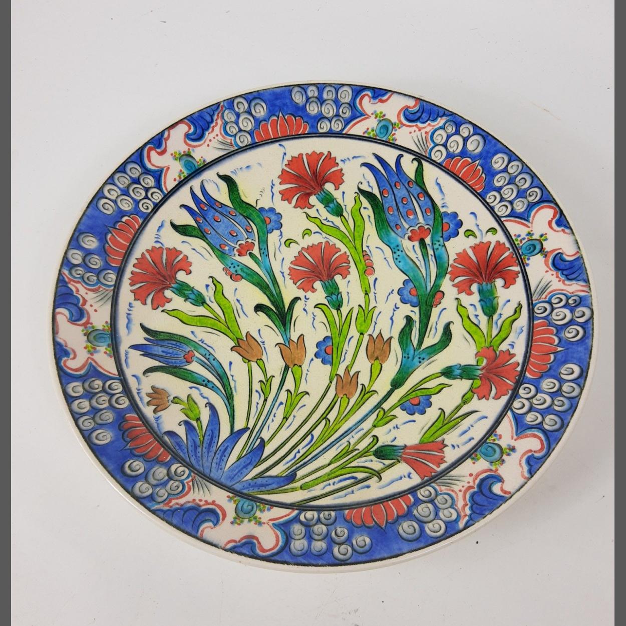 A bright and colourful hand-made charger with floral design, comes from Turkey 31cm diameter approx
