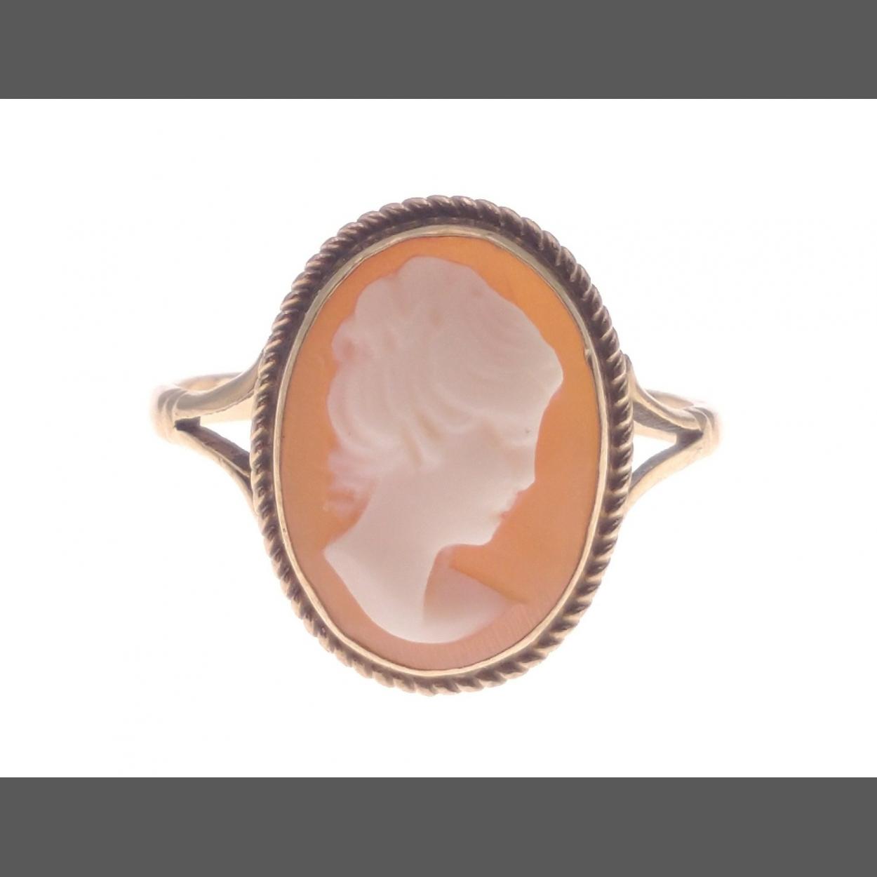 A nice cameo ring stamped 375 yellow gold, gross weight 2.15g approx, size N