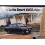 A collection of VINTAGE AD GALLERY British Nostalgia Collection to include models of cars The Escort Mexico, Ford Anglia from the '67 Motorshow, Escort 1300E, Ford Capri and Ford Probe - x5 qty - dimensions each 30cm x 45cm