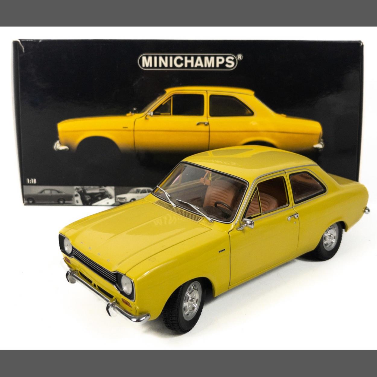 MINICHAMPS FORD ESCORT 1 STREET - 1971 1:18 scale model in a new condition in original packing and box the car comes in a classic 1970s yellow and is an accurate model not a toy