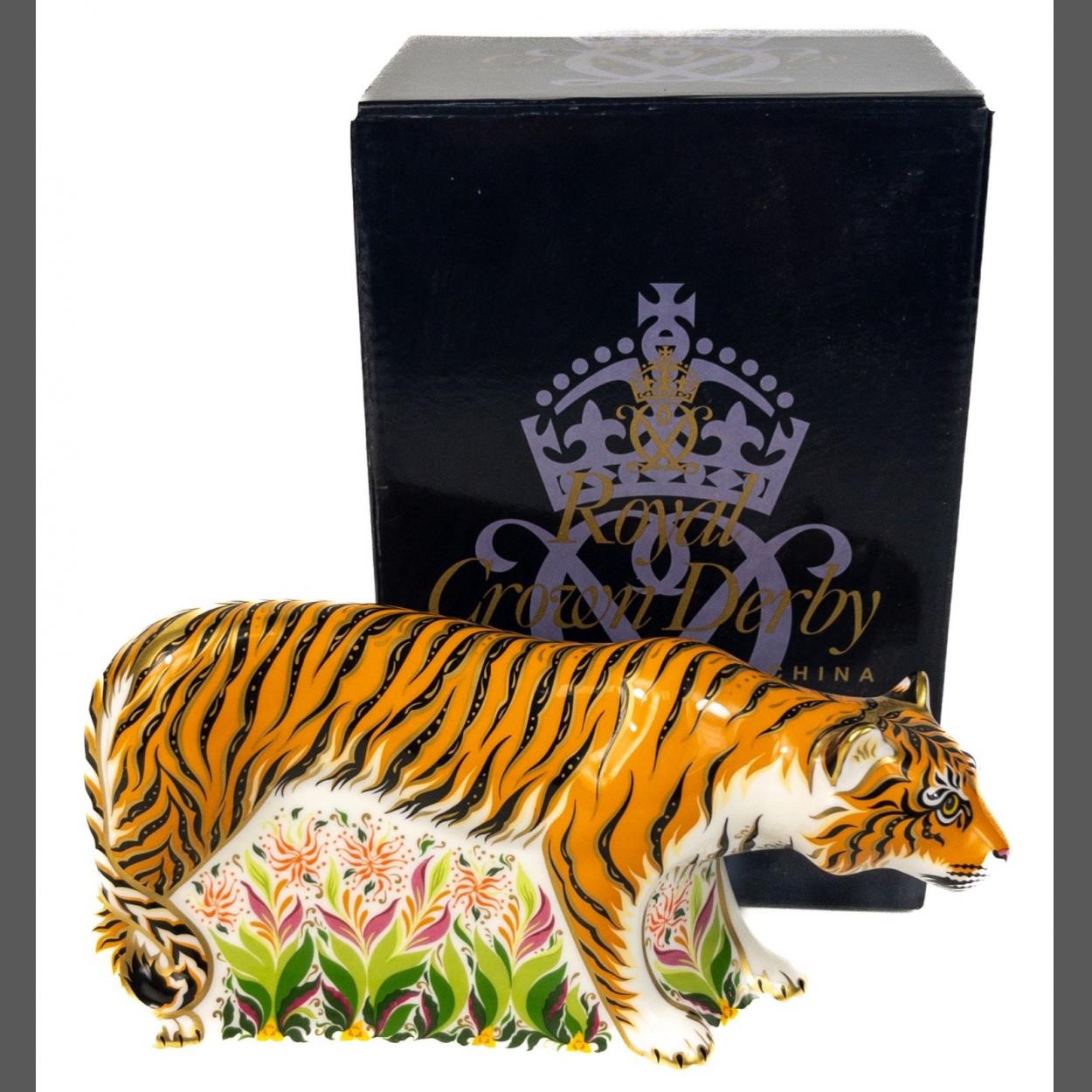 ROYAL CROWN DERBY Sumatran Tigress 2008 gold button first quality in original box with receipt from 2012.