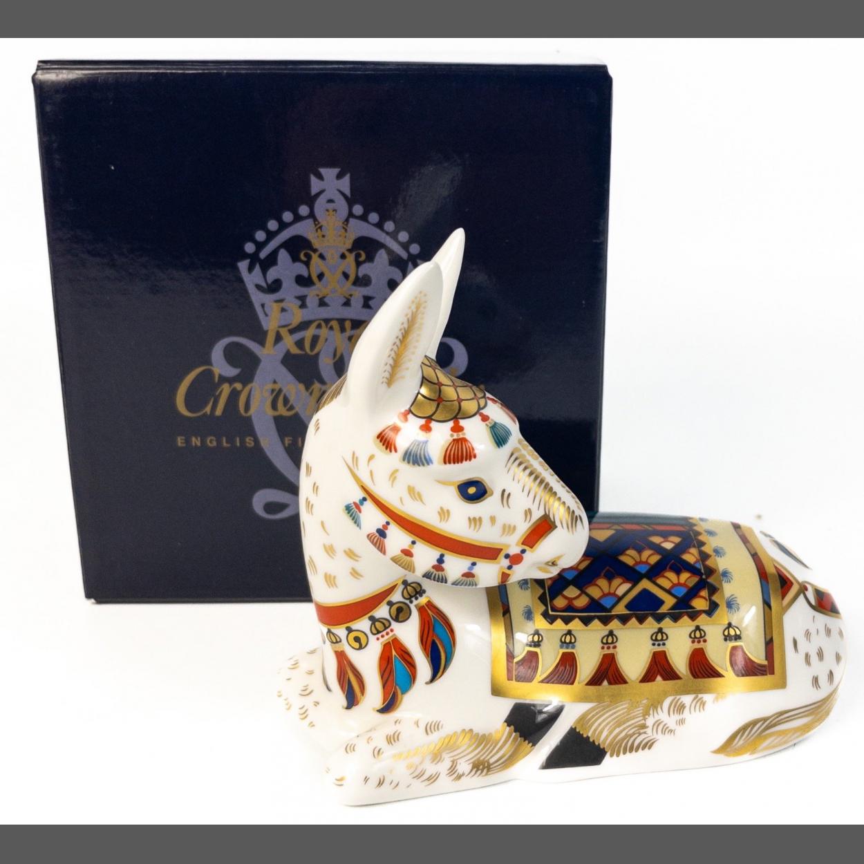 ROYAL CROWN DERBY Paperweight Donkey gold button first quality in original box