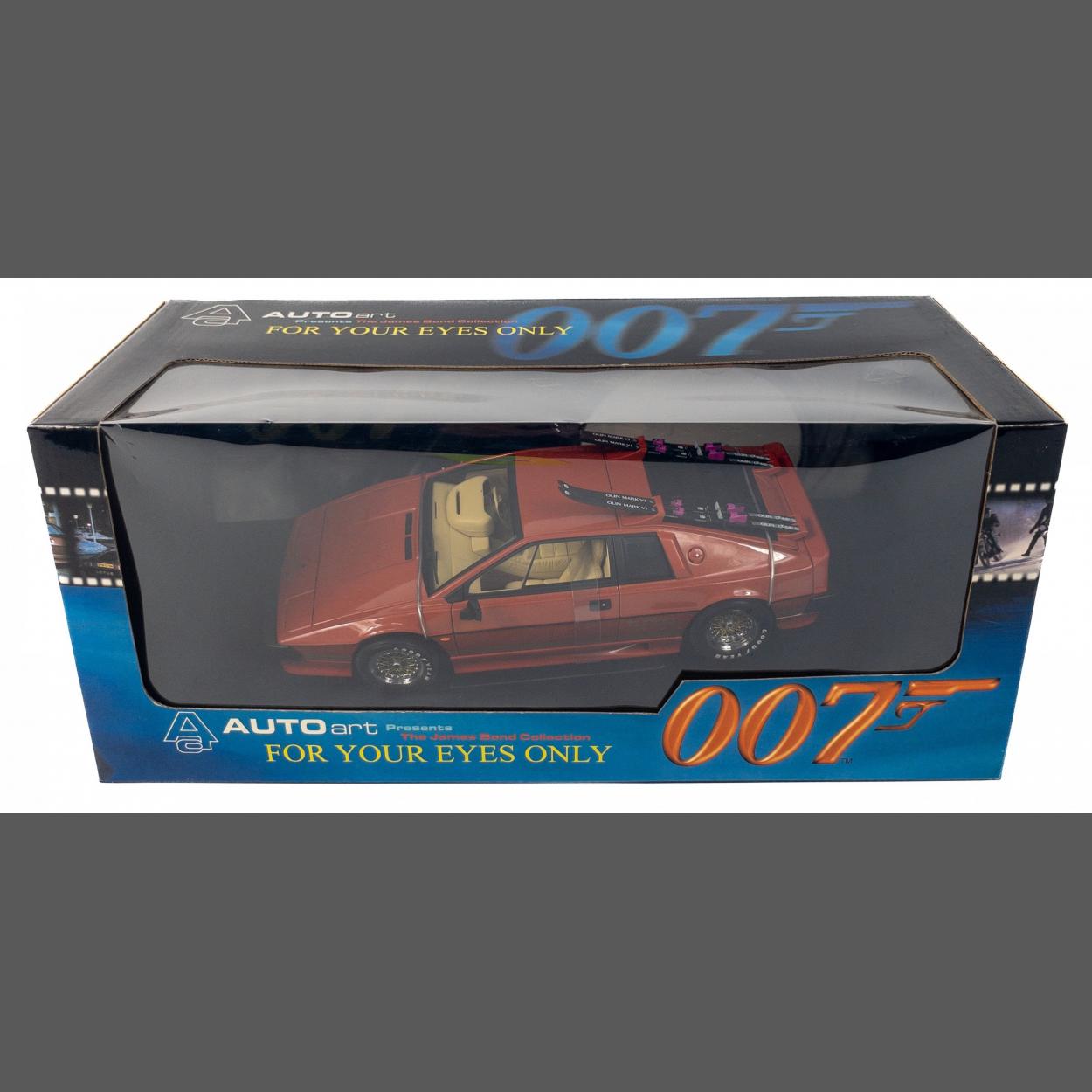 RARE to find these days! AUTOart 007 The James Bond Collection FOR YOUR EYES ONLY presents a detailed LOTUS ESPRIT turbo in bronze 'for adult collectors' No 70060 - 1:18 scale - box slight wear and tear and car in an 'unused and as new condition' - item has been purchased by an avid collector and never removed from the box!