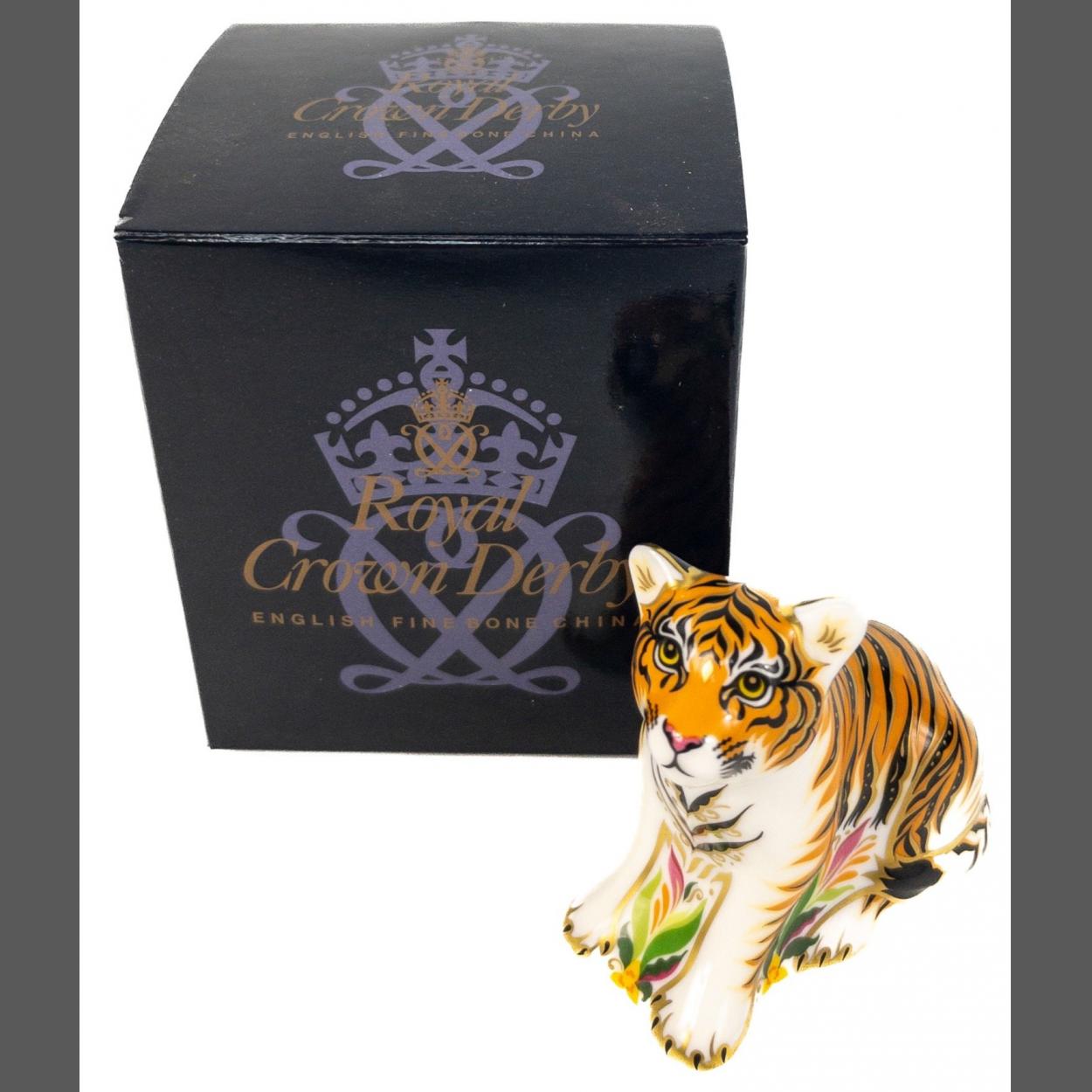 ROYAL CROWN DERBY Sumatran Tiger Cub 2008 gold button first quality in original box with receipt from 2012.