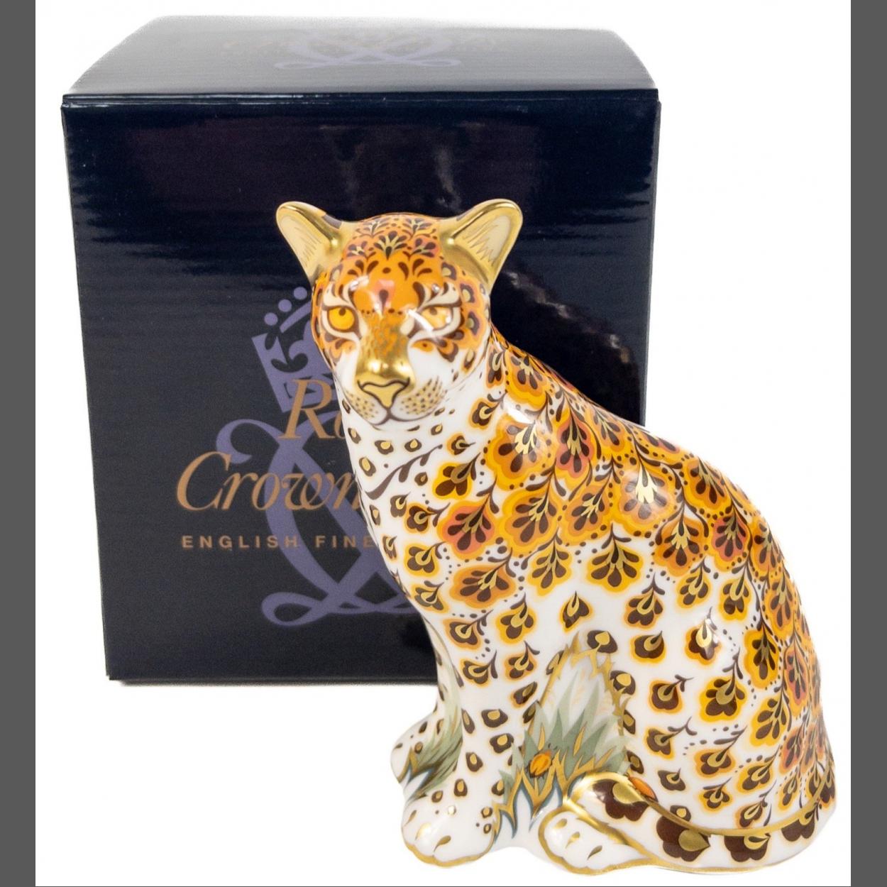 ROYAL CROWN DERBY Leopardess 2007 gold stopper first quality in box.