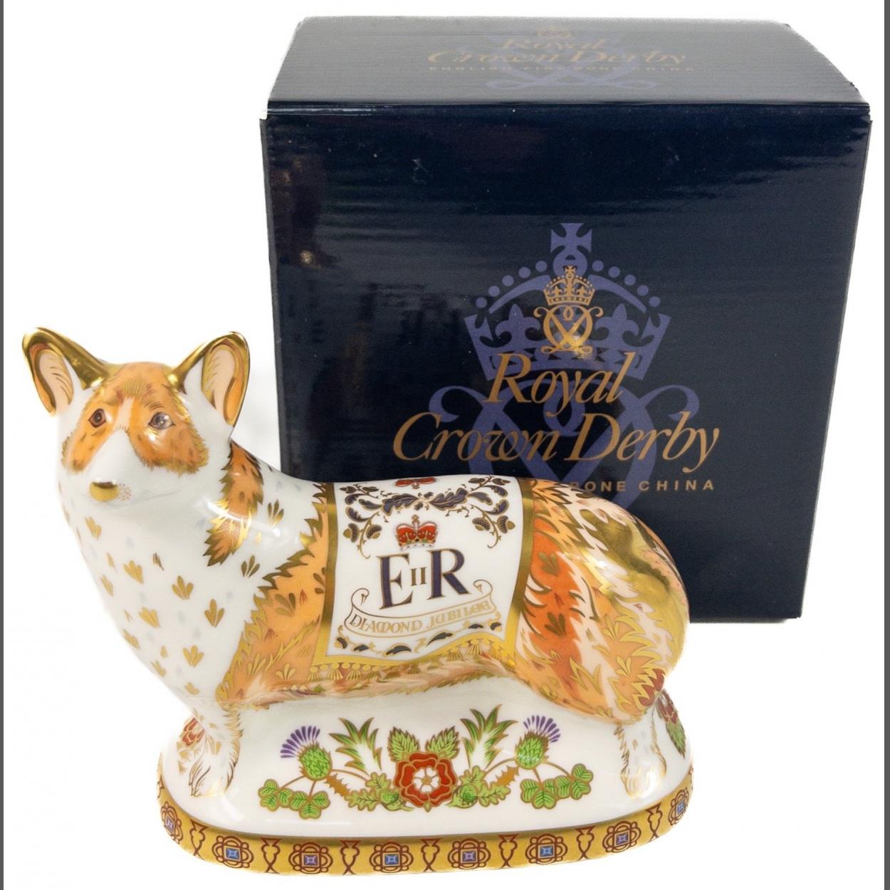 ROYAL CROWN DERBY Corgi Diamond Jubilee Limited Edition 189/500 Gold stopper first quality in box