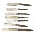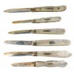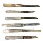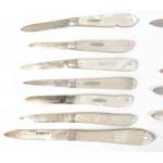 NOW WHERE DID I PUT MY POCKET KNIFE? A super collection of thirteen (Yes, Thirteen!) Mother of Pearl handled silver bladed (all hallmarked) fruit knives. Various makers, dates. etc. A few little bends and blunted tips but a really super collection.