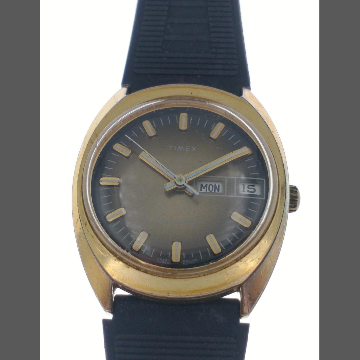 A nice clean TIMEX wristwatch with day and date adjust, yellow metal cased and stainless steel backed ticking away quite happily on valuation