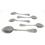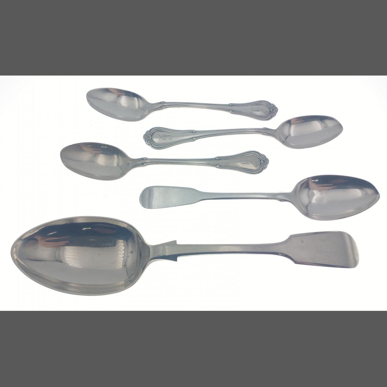 A small collection of silver spoons to include one larger ARGENTINA SILVER spoon at 53g and three 1890 hallmarked teaspoons with a total of approx 45g, also included an attractive 1818 Solomon Royes teaspoon at 16g