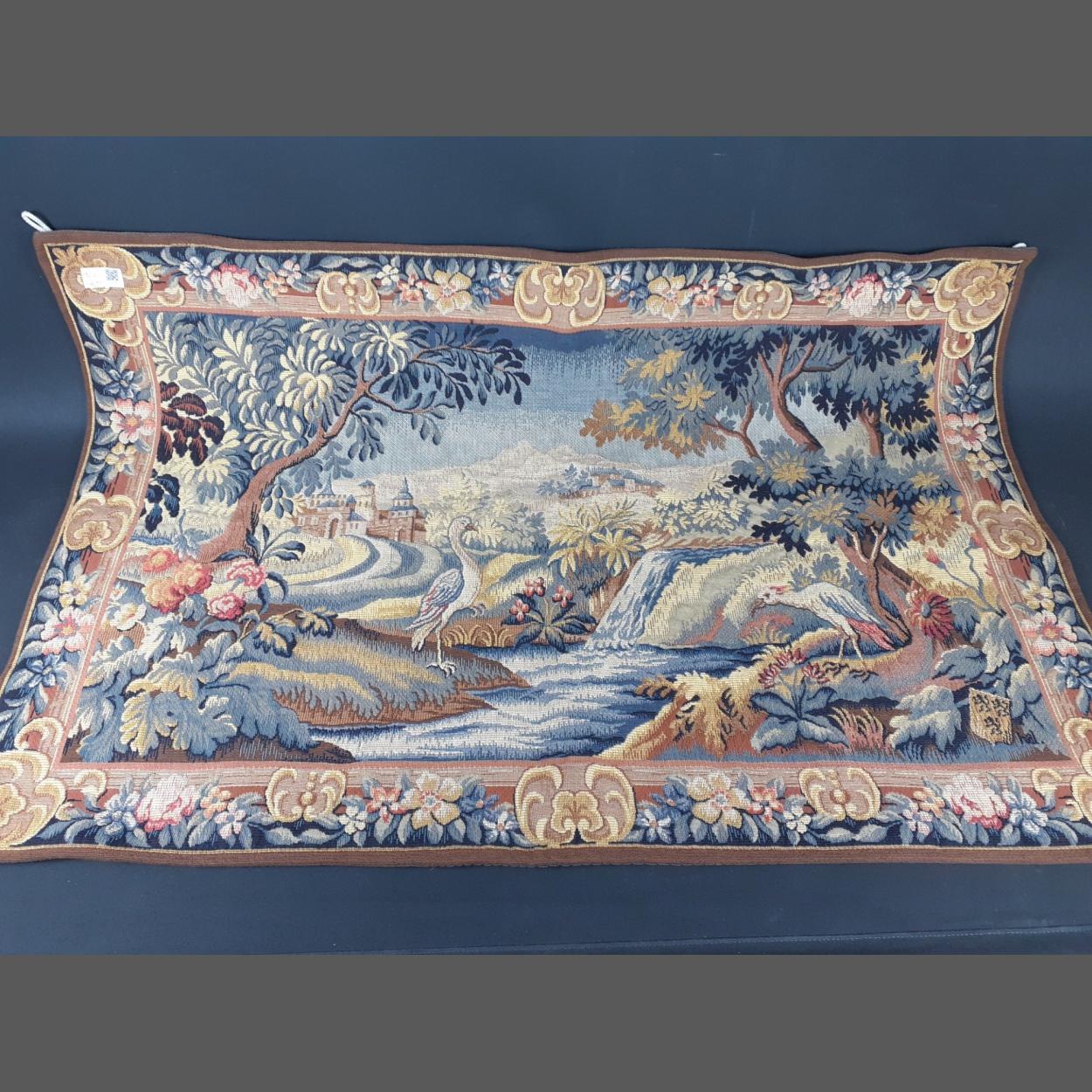 A hanging tapestry panel of a pastoral scene 100x70cm, fully backed