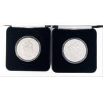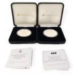 JUBILEE MINT. Queen Elizabeth coins x2. 90th Birthday solid silver proof £5 and The Year of the Three Kings 80th anniversary £5. Both well stored and complete with certificates and outer sleeves