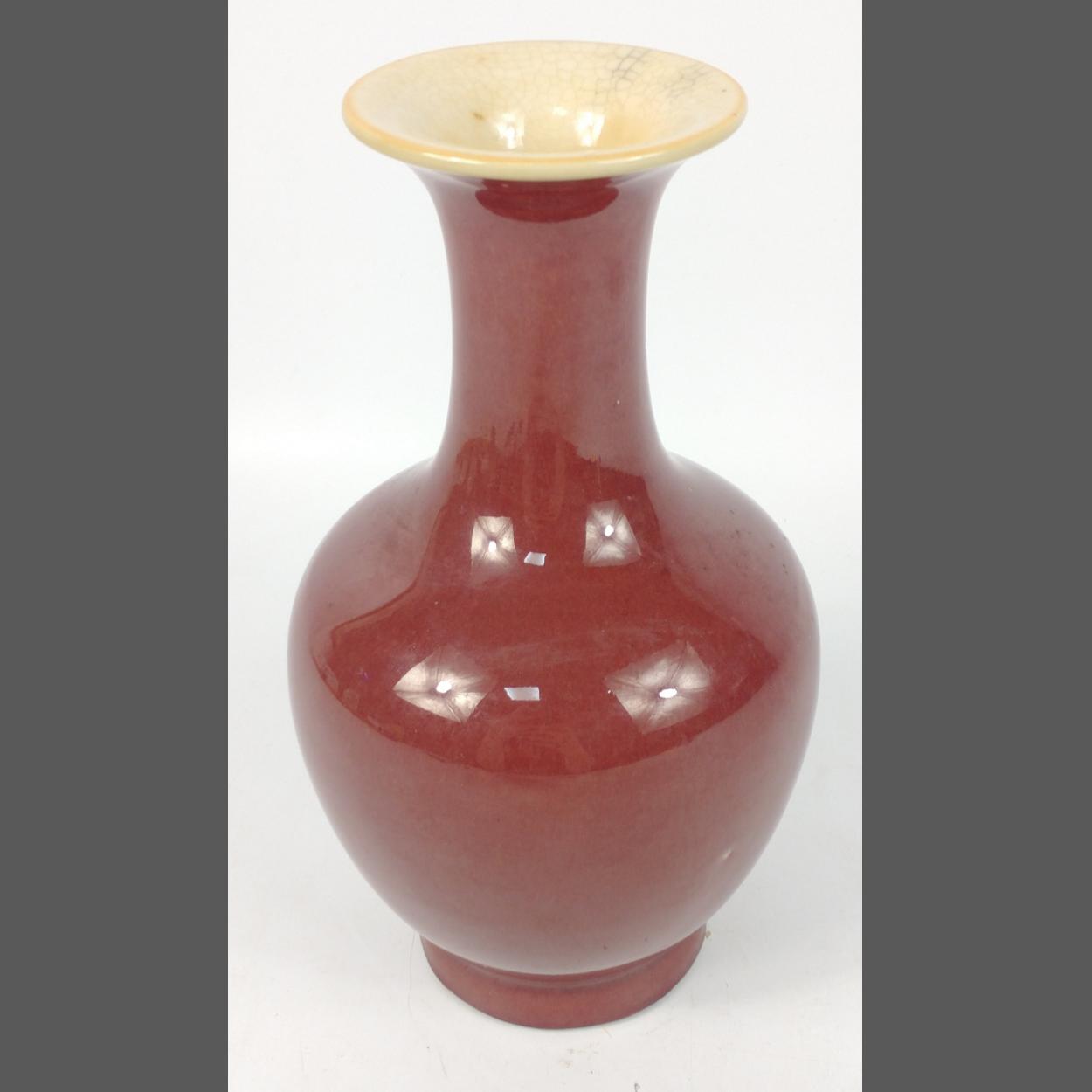 A vintage Chinese sang de beouf vase with crazing to the inside and base glaze standing 20cm tall