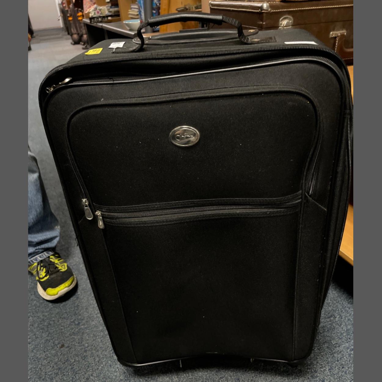 A large expanding travel suitcase on castors with extendable handle in black - height 64cm x width 40cm x depth 23cm