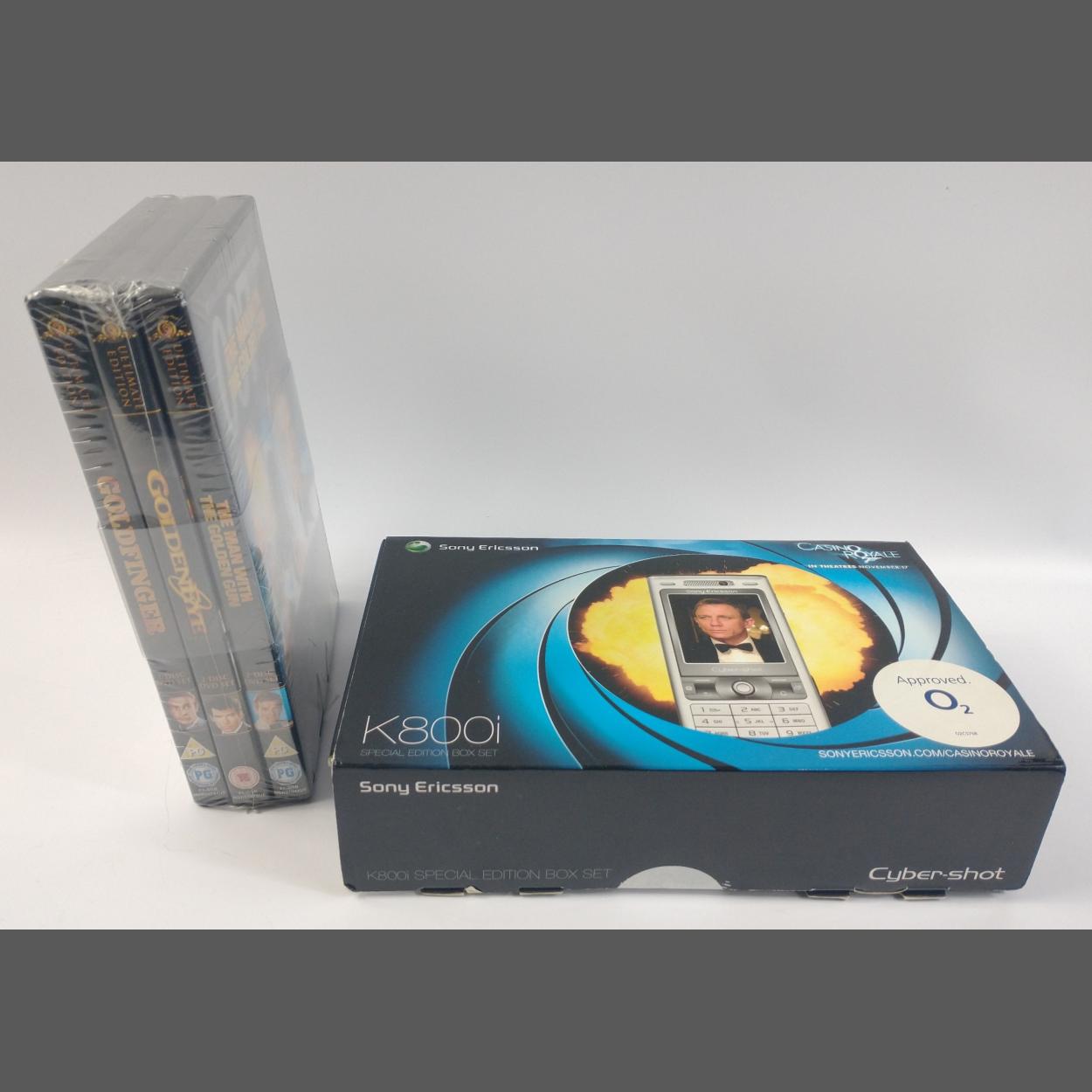 James Bond - rare to see an unopened special edition Casino Royale SONY ERICSSON K800i box set (needs SIM card)with a sealed set of 3 DVDs- Man with the Golden Gun, Goldeneye and Goldfinger