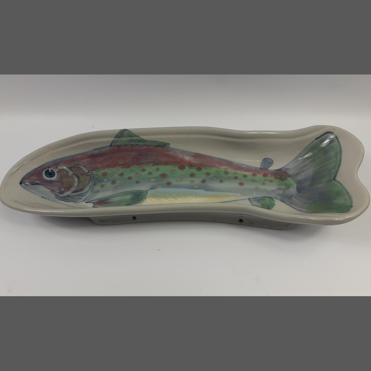 A HIGHLAND STONEWARE salmon dish, both decorative and useful 42cm long
