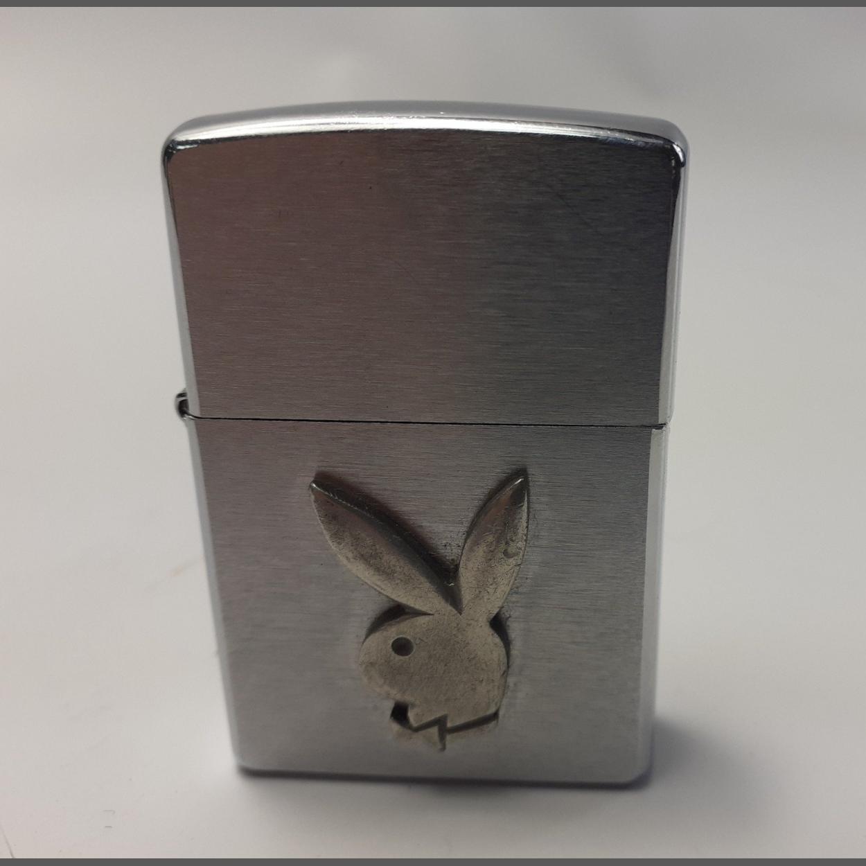A vintage ZIPPO petrol lighter with a PLAYBOY BUNNY emblem to the outer case