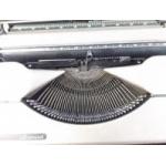 EMPIRE ARISTOCRAT typewriter contained within its own metal removeabe cover. A neat little item. Measures approx 28 x 30 x 7cm with cover on