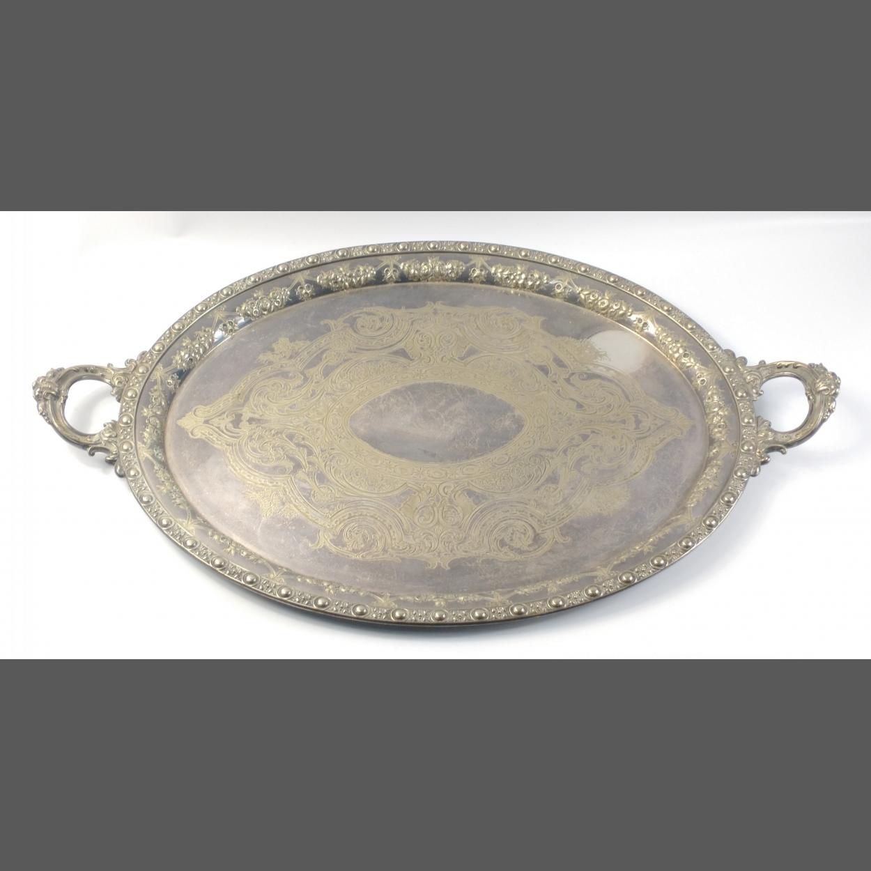 A huge EP Silver Plated salver by JOHN ROUND & SON. An impressive 77cm across at the handles and weighing an incredible 4kg approx. Very attractive and in good condition although may benefit from a clean.