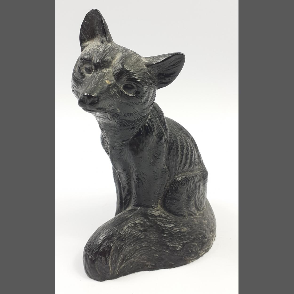 A figurine of a fox hand-crafted from Welsh coal, stands approx 14cm high