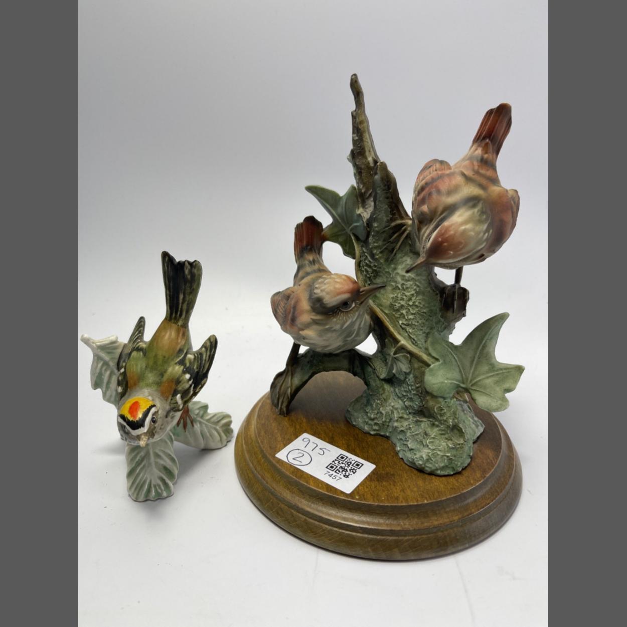 A vintage CAPODIMONTE figure of a pair of WRENS by Guiseppe Armani and a GOEBEL Firecrest model number CV88 , both figures are in good condition