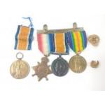 A set of WWl service medals to include the Great War Service medal belonging to PTE G Balsillie Royal Scots Fusiliers, and a bar with ribbons intact trio set of WWl service medals to include for a Sargeant W J Campbell for the Royal Army Medical Corp to include WW1 Medal Trio, 1914/15 Star, British War And Victory Medals to also include The Royal British Legion screw back enamel lapel badge and one other lapel badge
