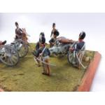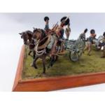 Diorama mounted scene, period dragoon artillery resin hand painted soldiers with canon and seven soldiers in total - dimension 28cm x 23cm mount