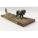 Agricultural Diorama 19th Century Turn West plough and horse mounted scene, period scene, die-cast hand painted figures - 2 figures in total - base dimension 31cm x 10cm