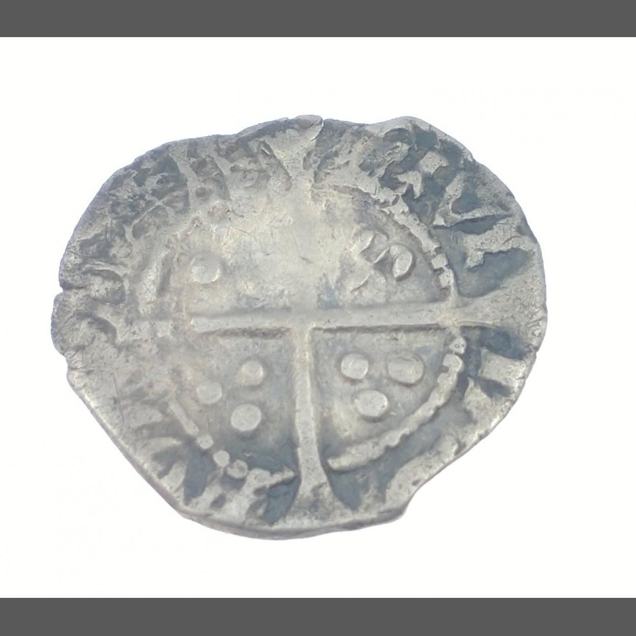 Small silver hammered coin with cross 12mm diameter