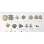 A collection of original British Military Infantry Cap Badges to include Black Watch x2 variants, Loyal North Lancashire, Kings Shropshire, North Staffordshire, Northamptonshire, York and Lancashire, Border Regiment, Royal West Kent 2 x variants and many others. 25 badges in total all in excellent collectible order many complete with original collectors annotated notes.