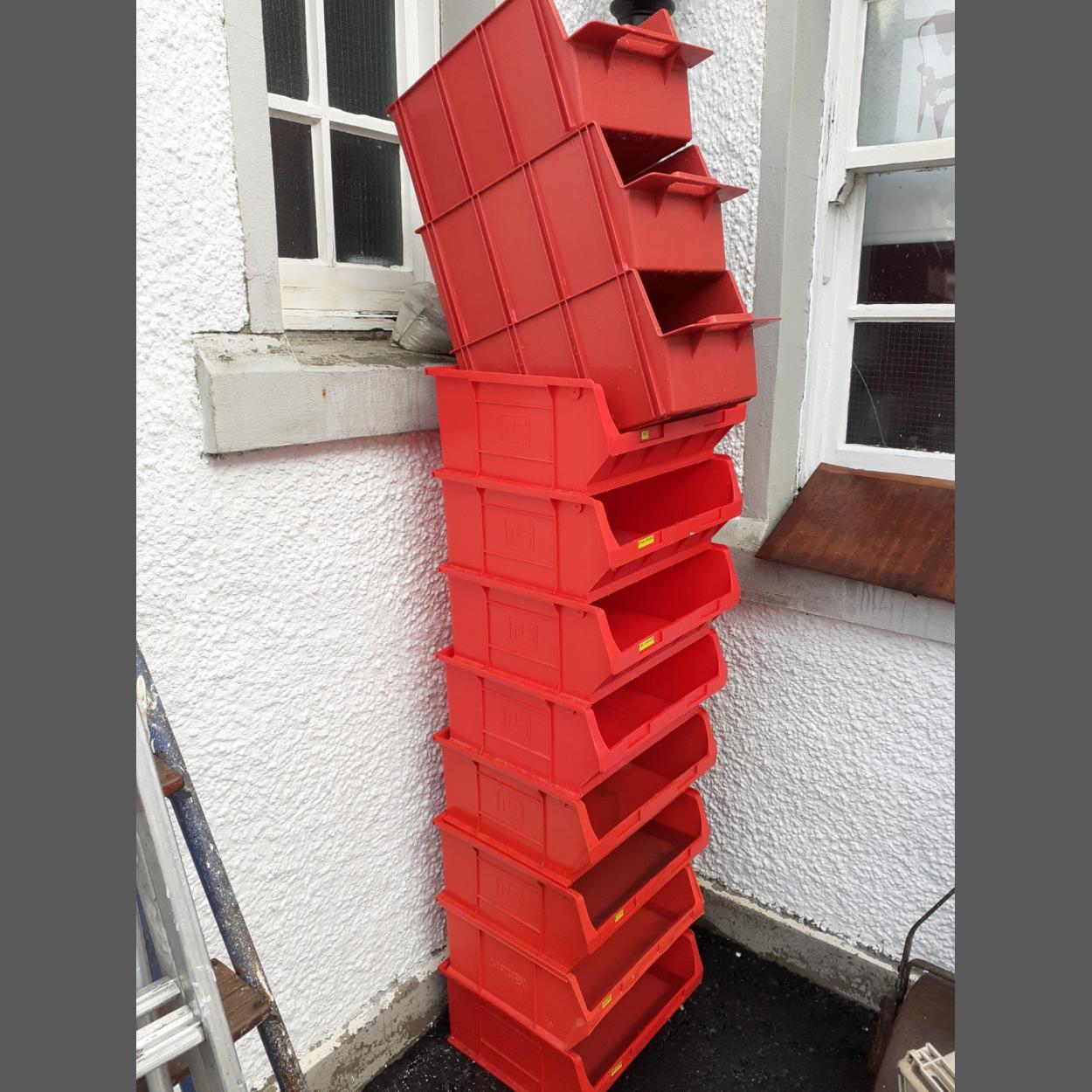 You can never have too much storage. These plastic bins offer a flexible solution to storage - garage, children's room, craft room etc. This lot comprises 3 bins at 28cmWx 40cmD x21cmH plus 8 bins at 41cmWx36cmDx18cmH